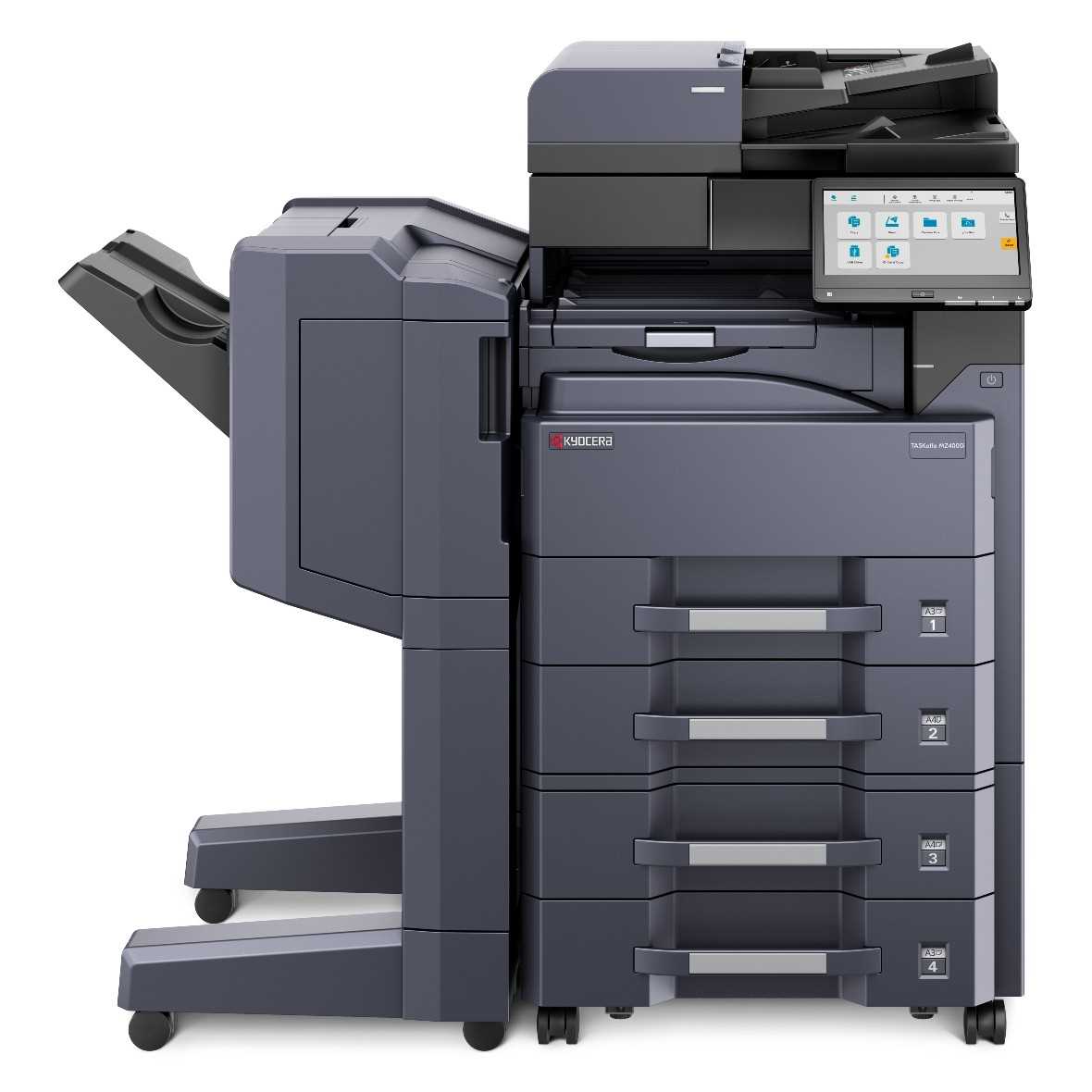 МФУ лазерное Kyocera TASKalfa MZ4000i (A3), монохромное, Printer/Scanner/Copier, 1200×1200 dpi, 40/21 ppm (A4/A3), 4 GB+32 GB SSD, 1.6 GHz, tray 100+1000 sheets, USB+Ethernet, Duplex, 10.1″ touchscreen, HyPAS, drum 600k, базовый блок, без крышки, без тонера, реком. установка специалистом АСЦ