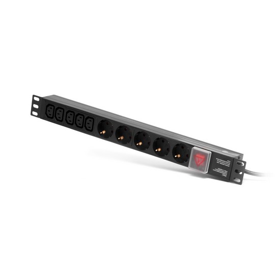 Сетевой фильтр, SHIP, 700510102, Для шкафов и стоек размера 19″, 5 Розеток C13 + 5 розеток типа Schuko, 2 м, 16A, 2500W, 220 в., Чёрный